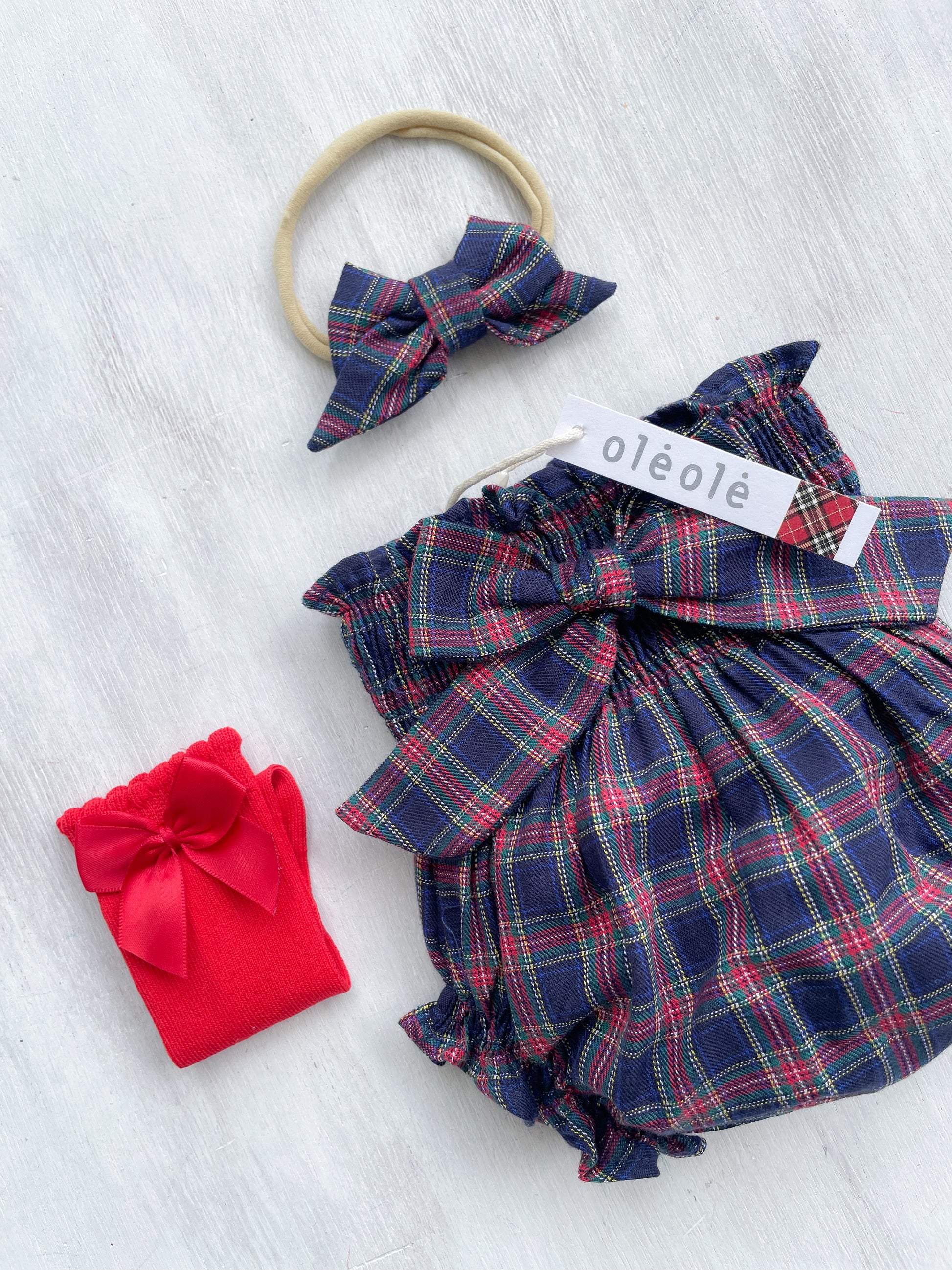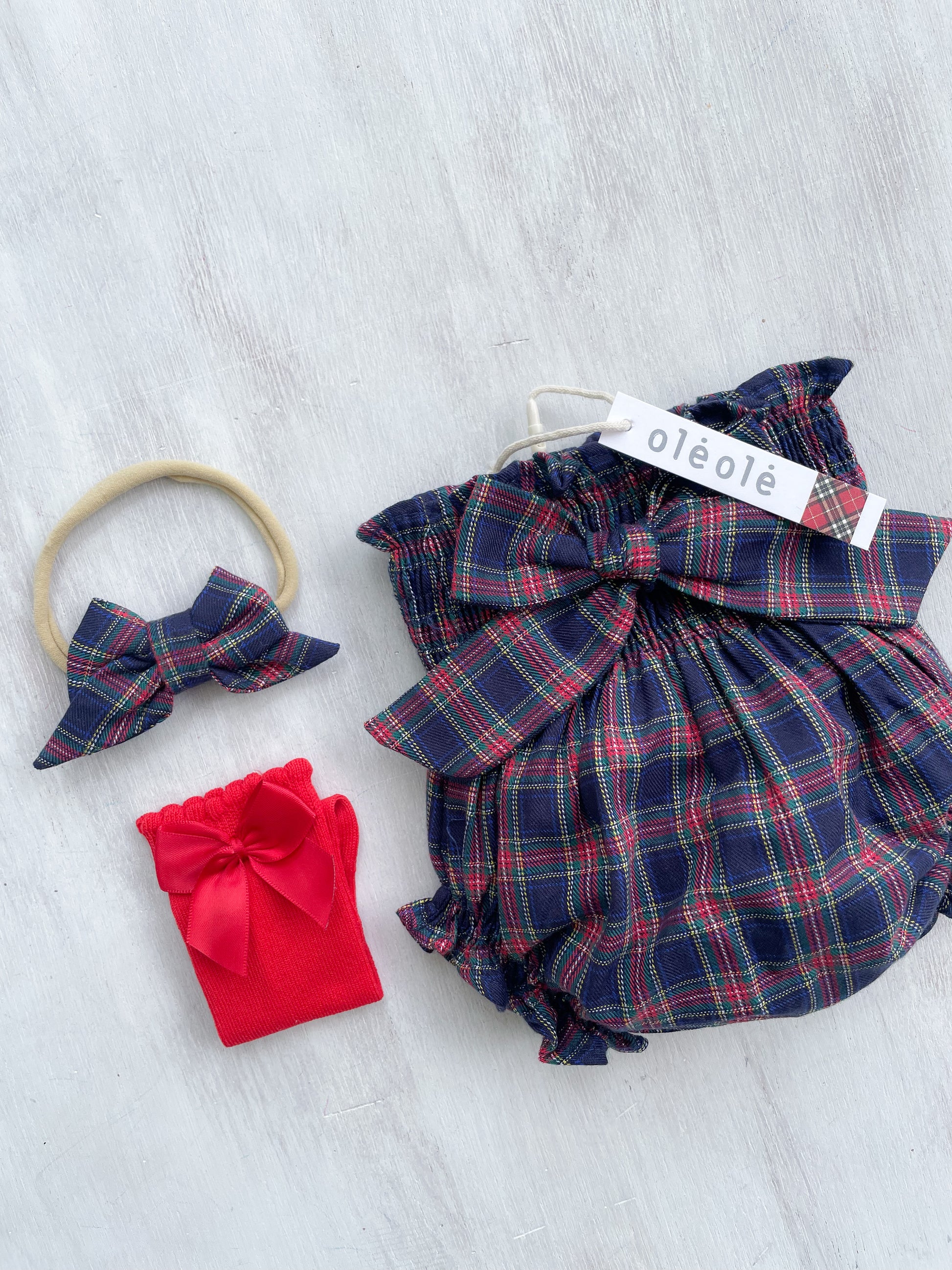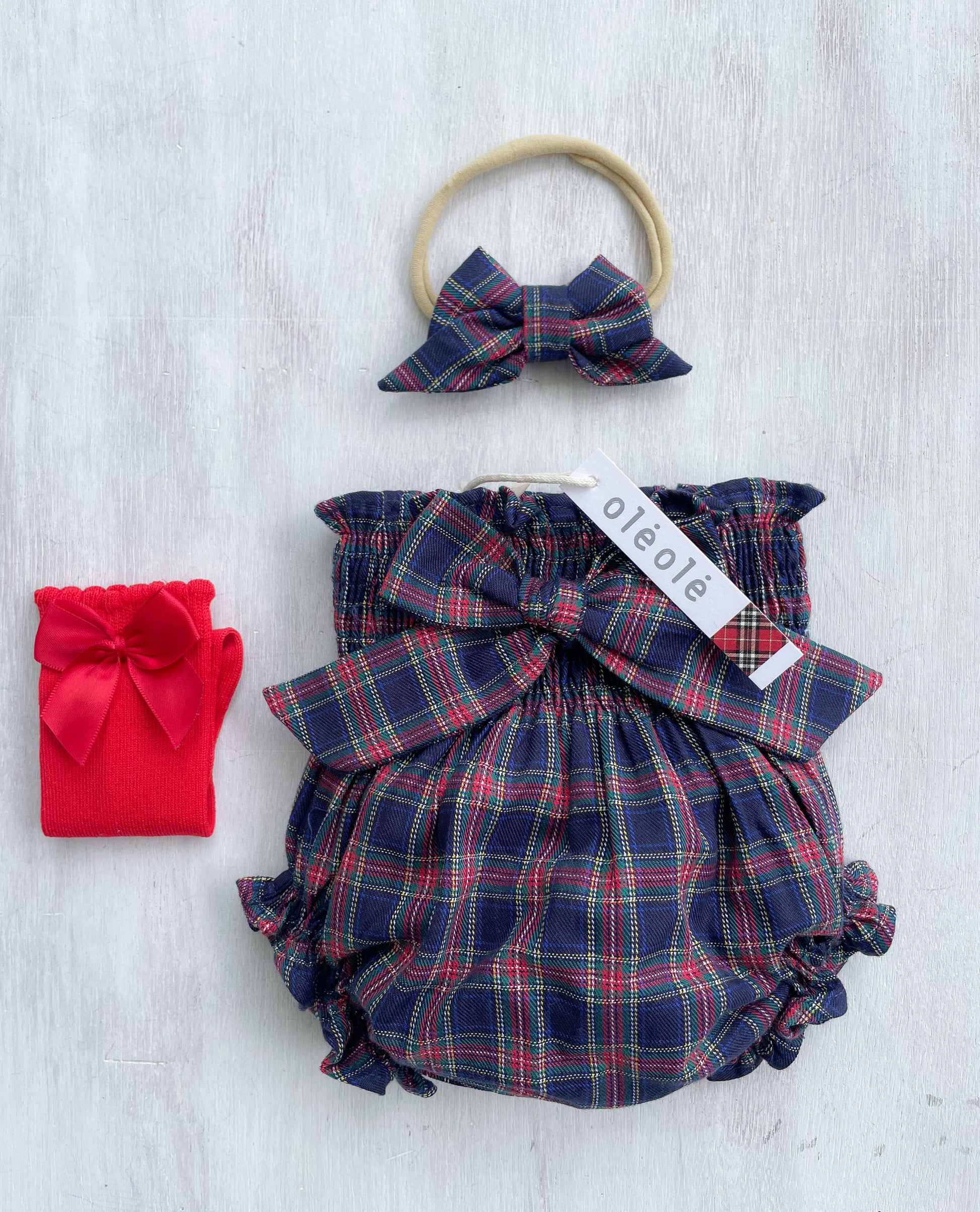 Bombacha c/ lazo tartán marino y rojo