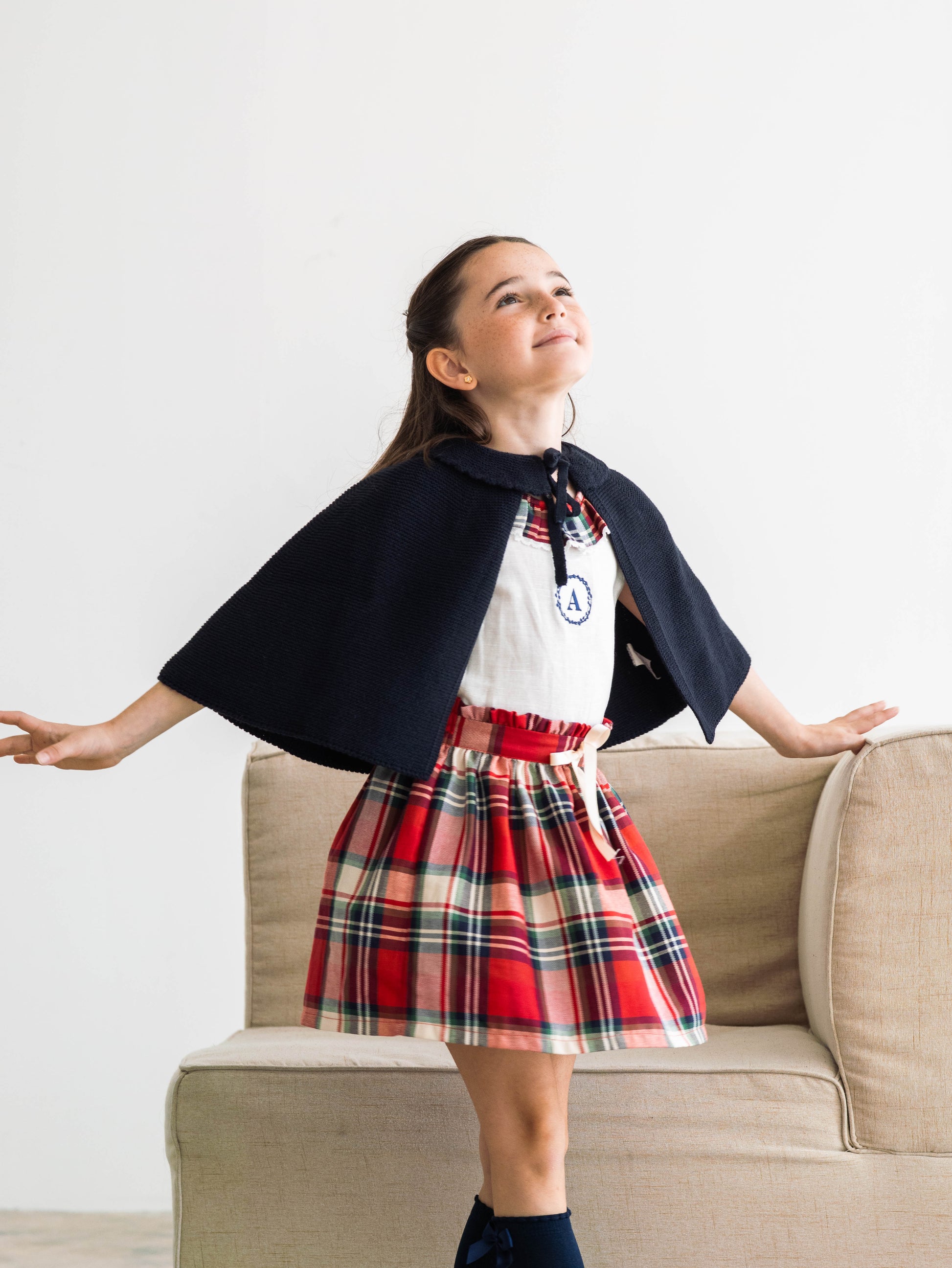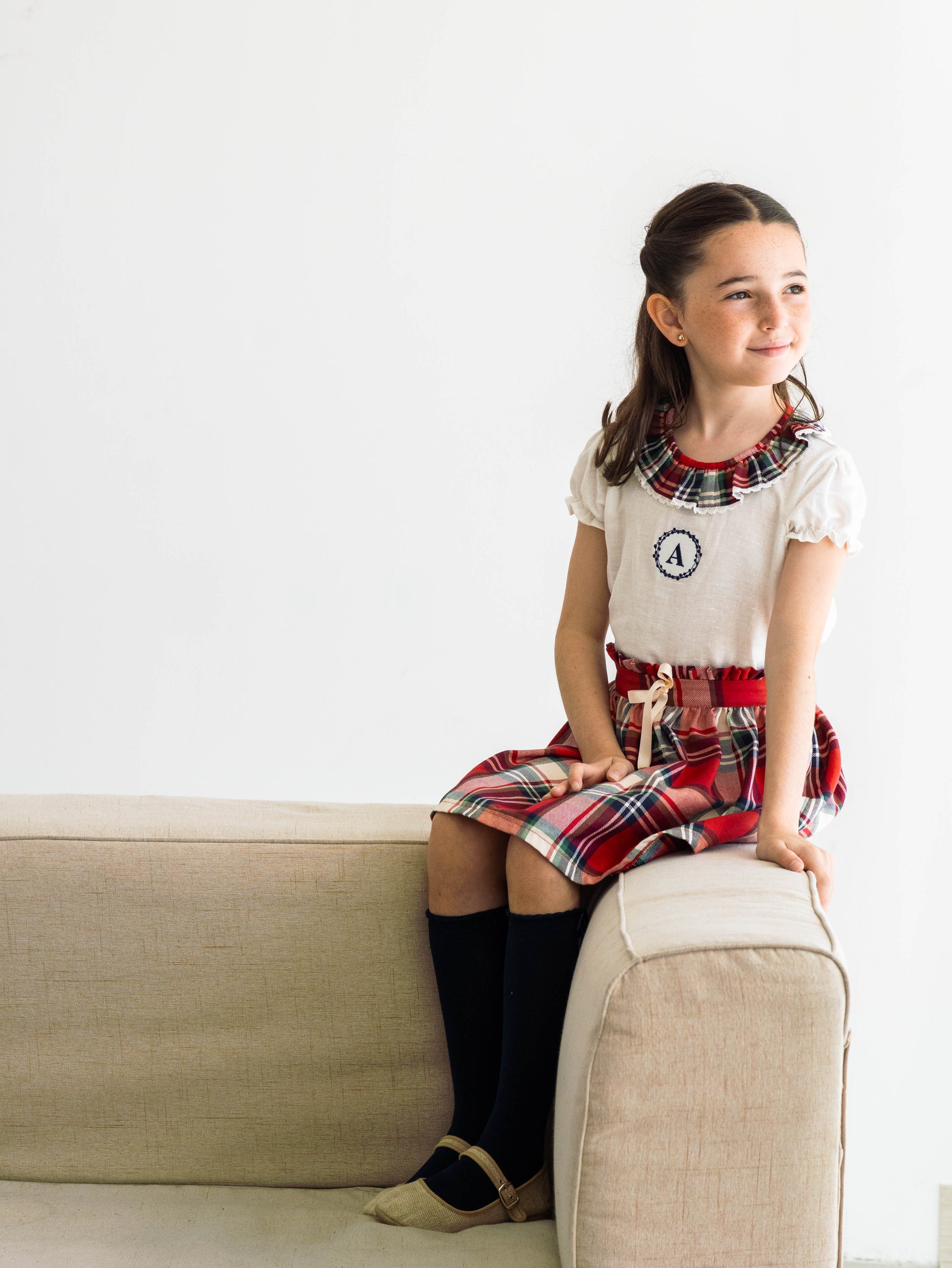 Conjunto MatchyCuello falda de grande cuadros rojos y crudo personalizado
