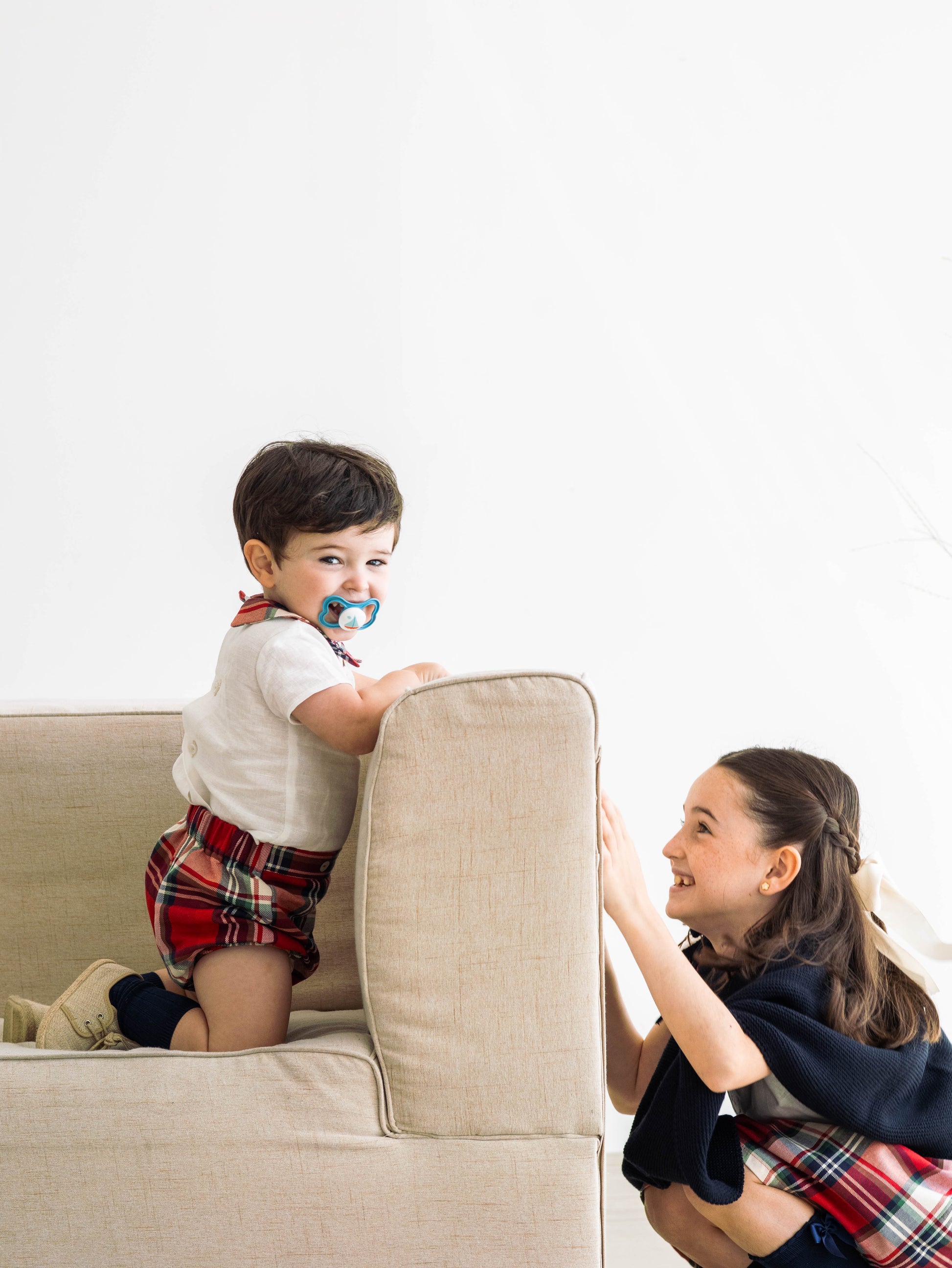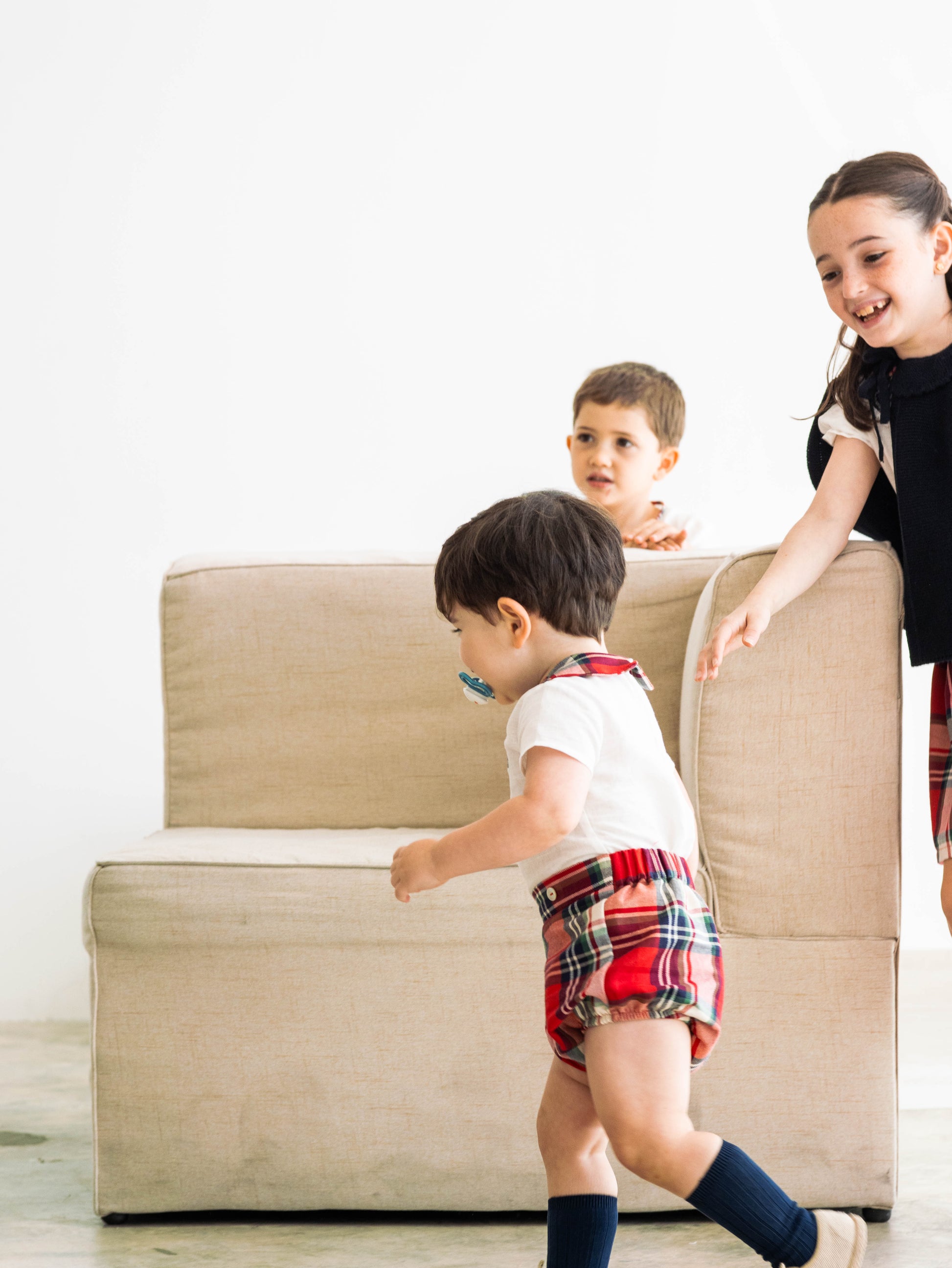 Conjunto varón bombacha cuadros rojos y crudo personalizado