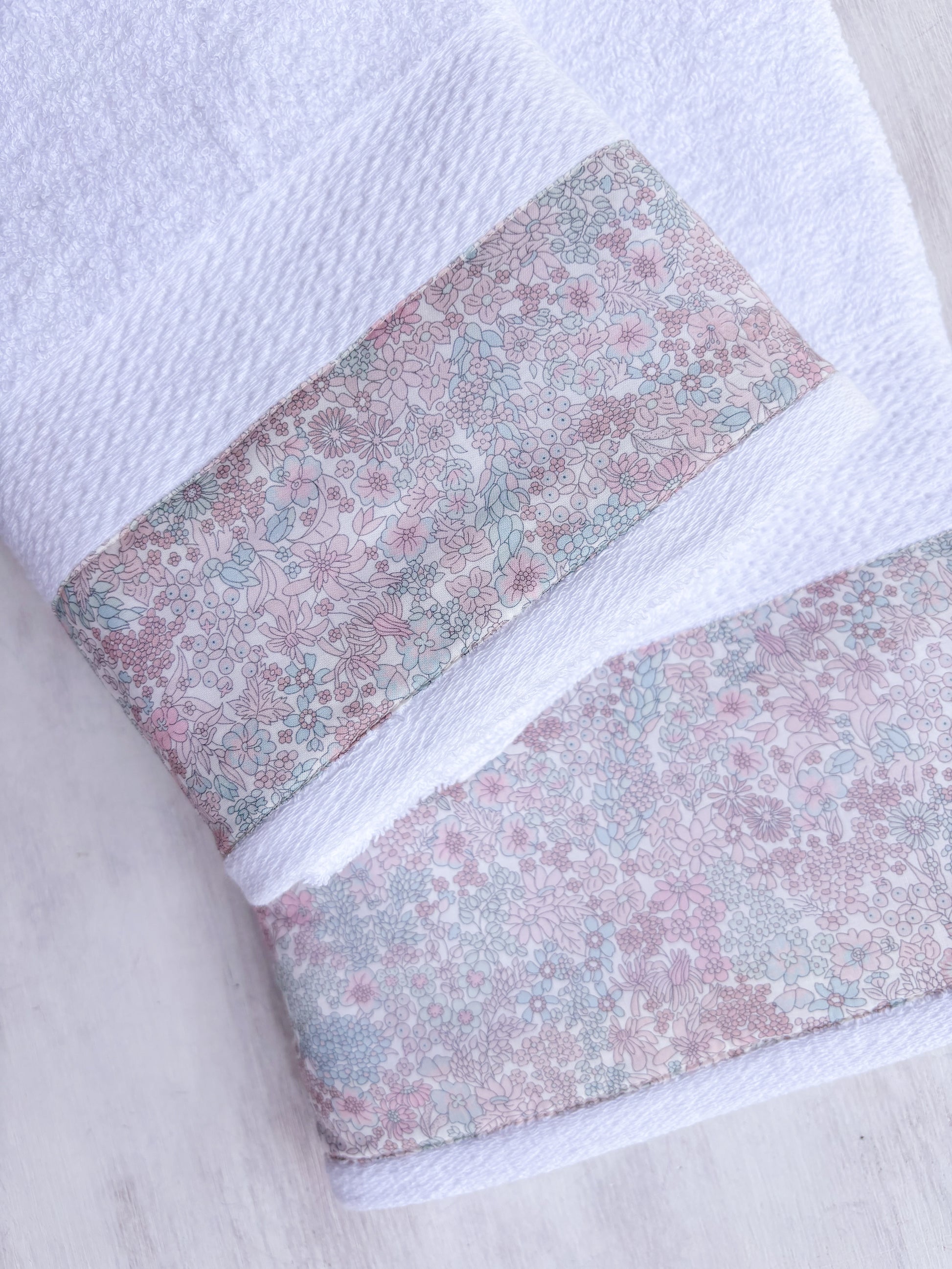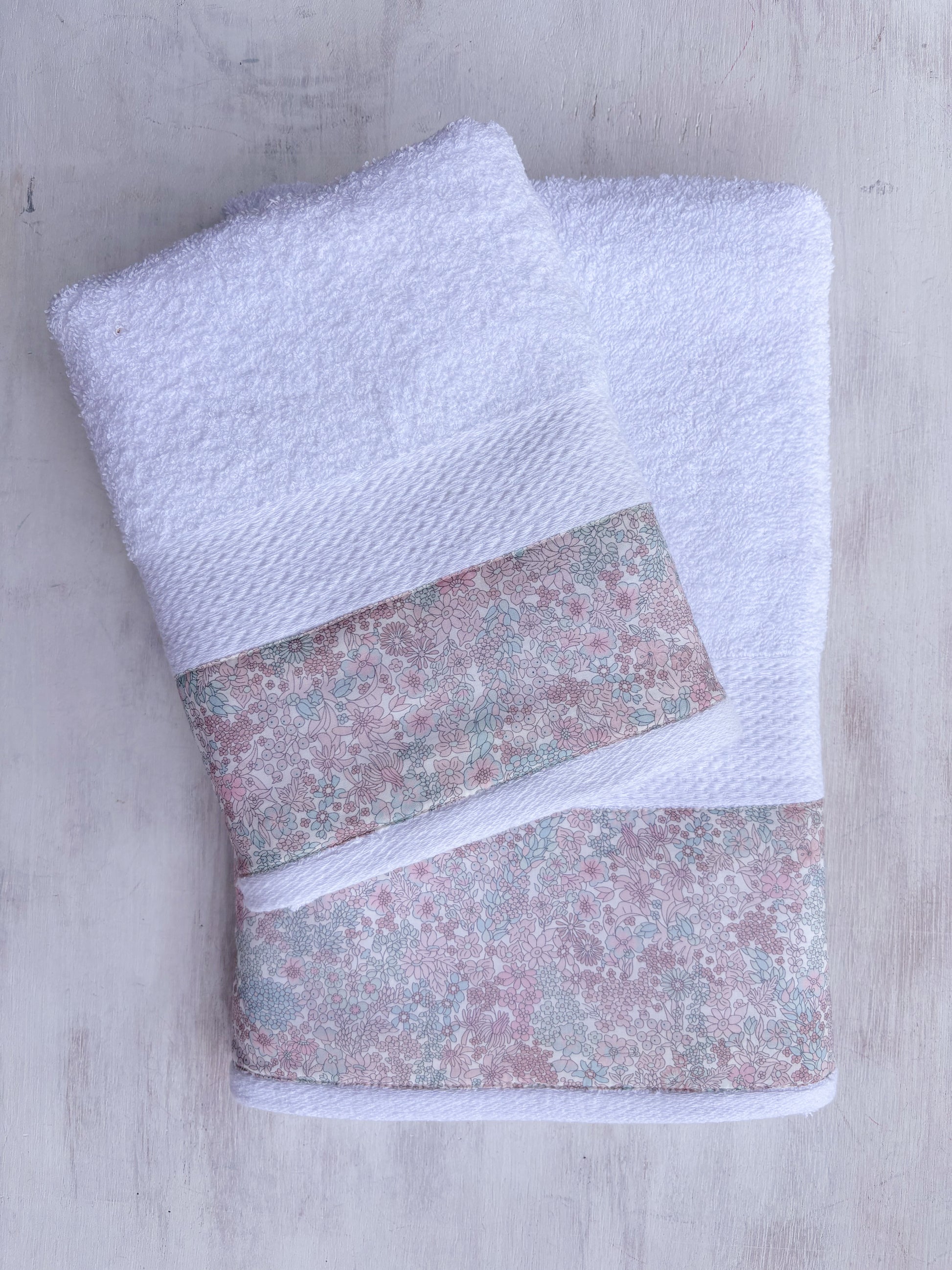 Juego de paños jardín flores rosado y verde agua